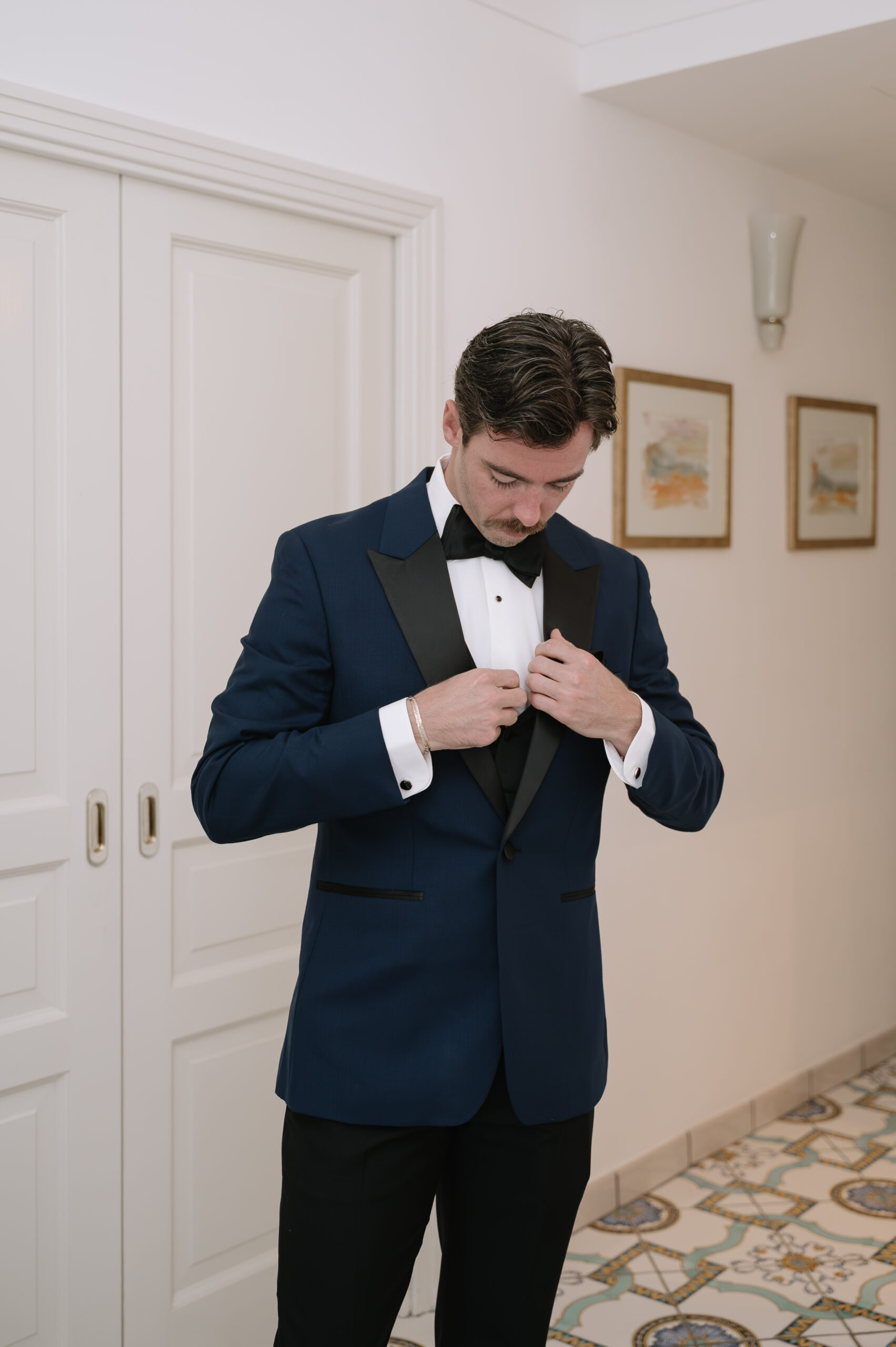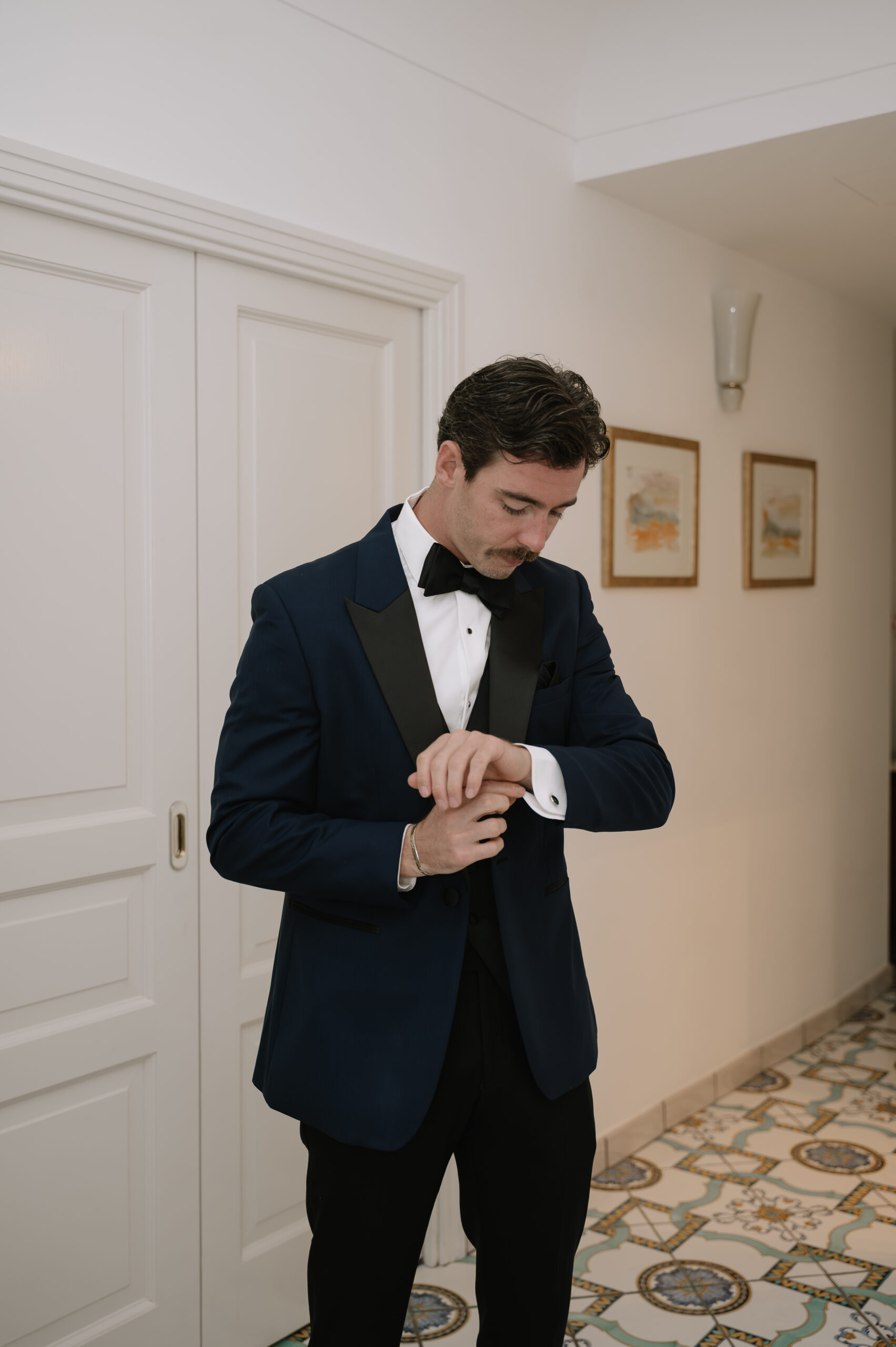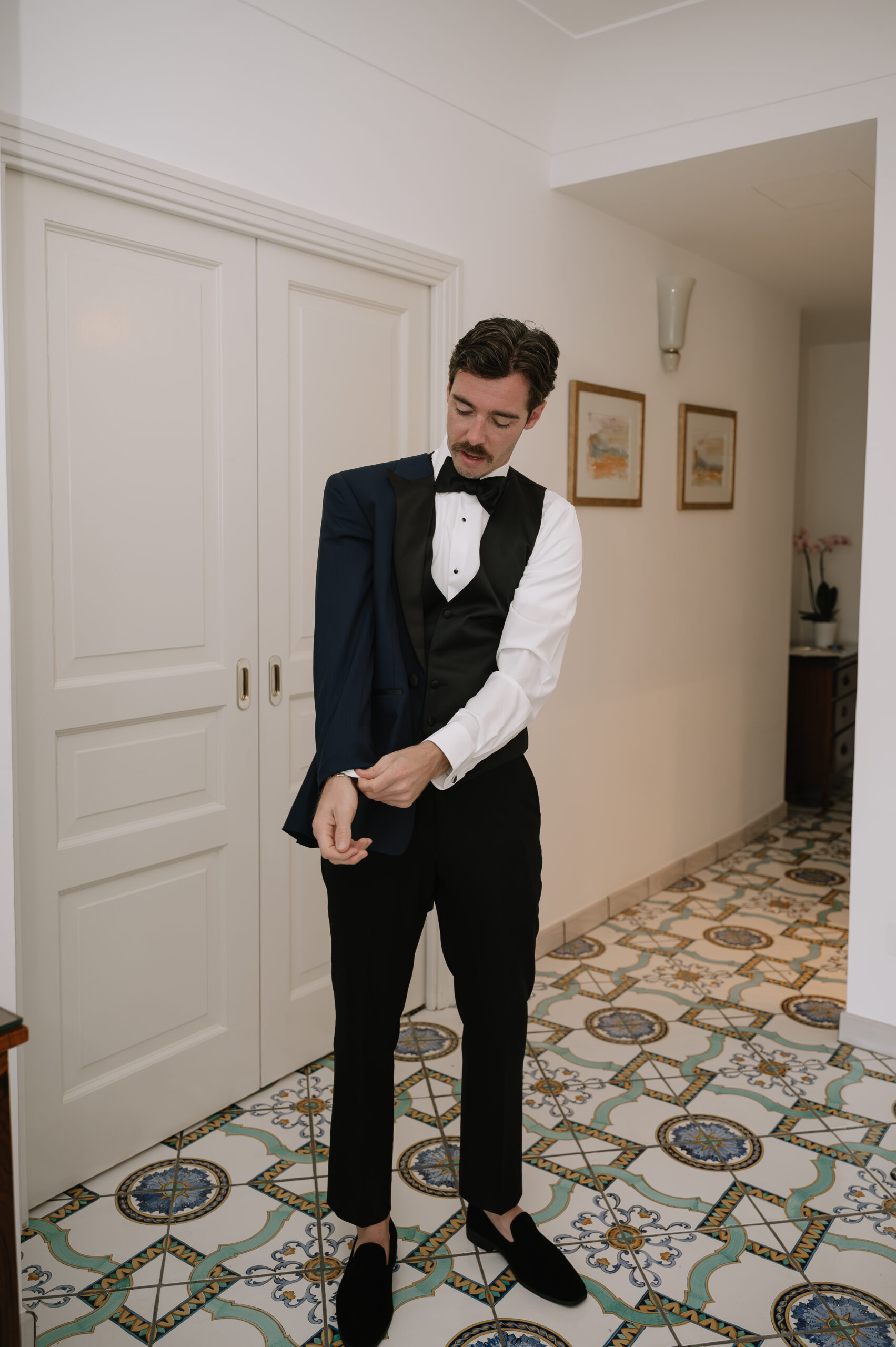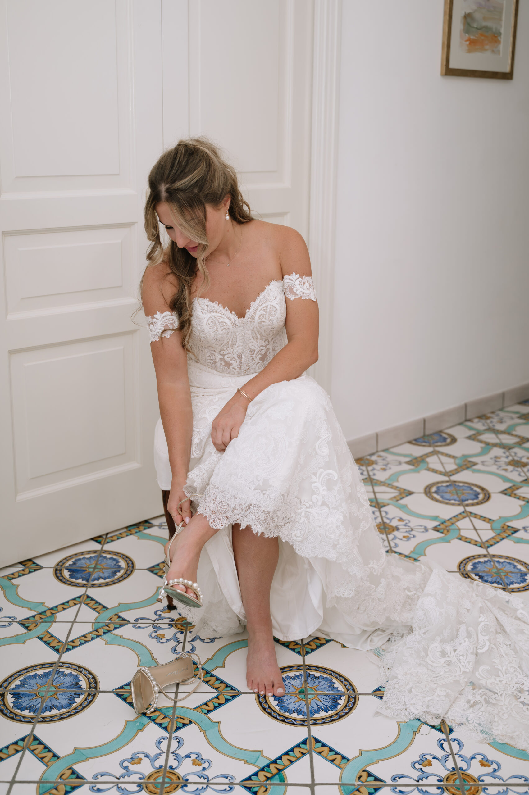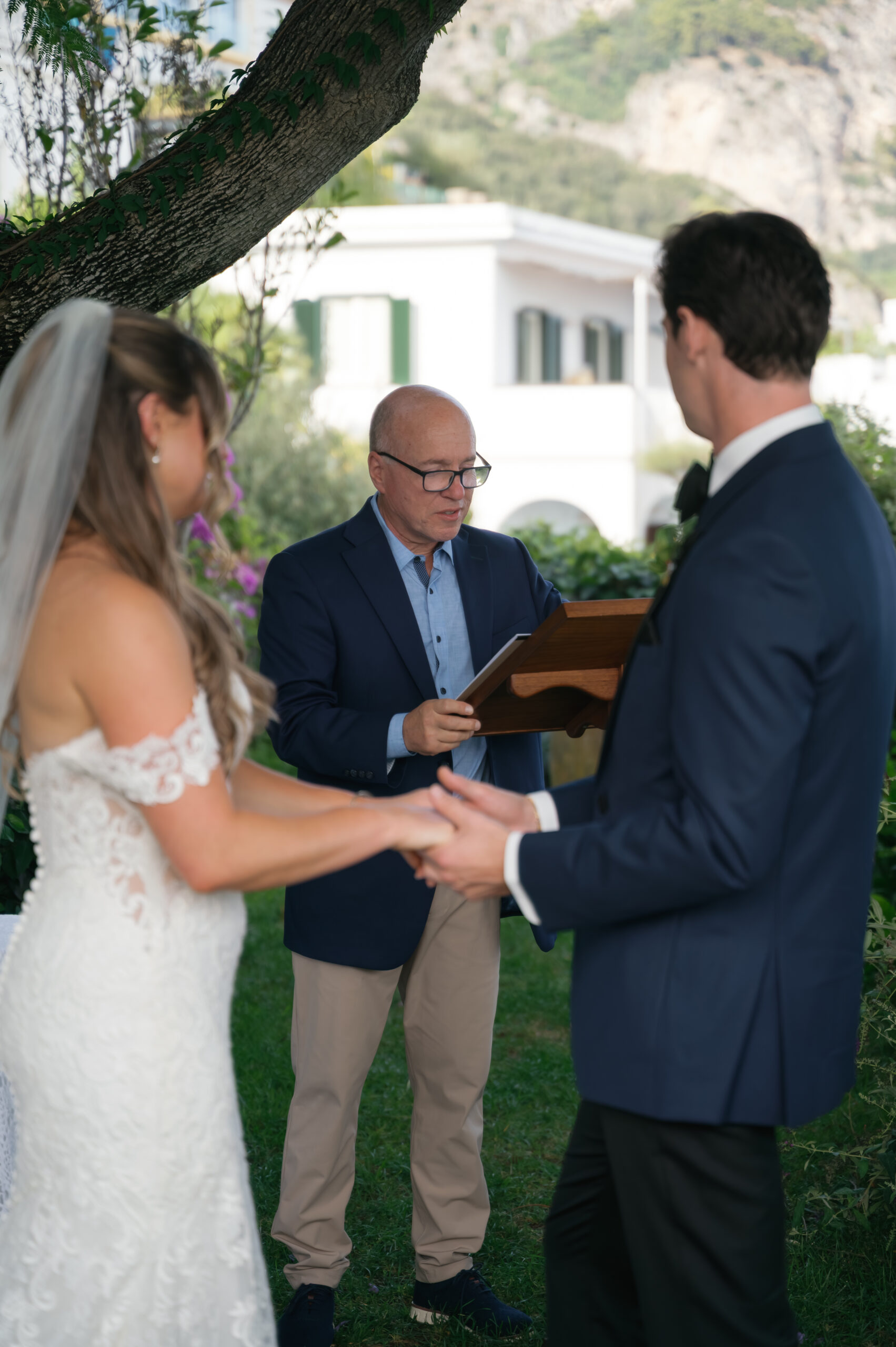 Their journey to Italy was not without obstacles – flight delays threatened to threaten their rhythm. But the team at Hotel Santa Caterina met them with kindness and grace, upgrading their room to a suite with a balcony that overlooked the sea. That room became “the moment before the moment”, the place where the dress’s lace breathed with sea air, where Mackenzie’s suit waited in soft light, where nerves and excitement softened into calm. Sometimes the universe repays hard journeys with unexpected gifts.